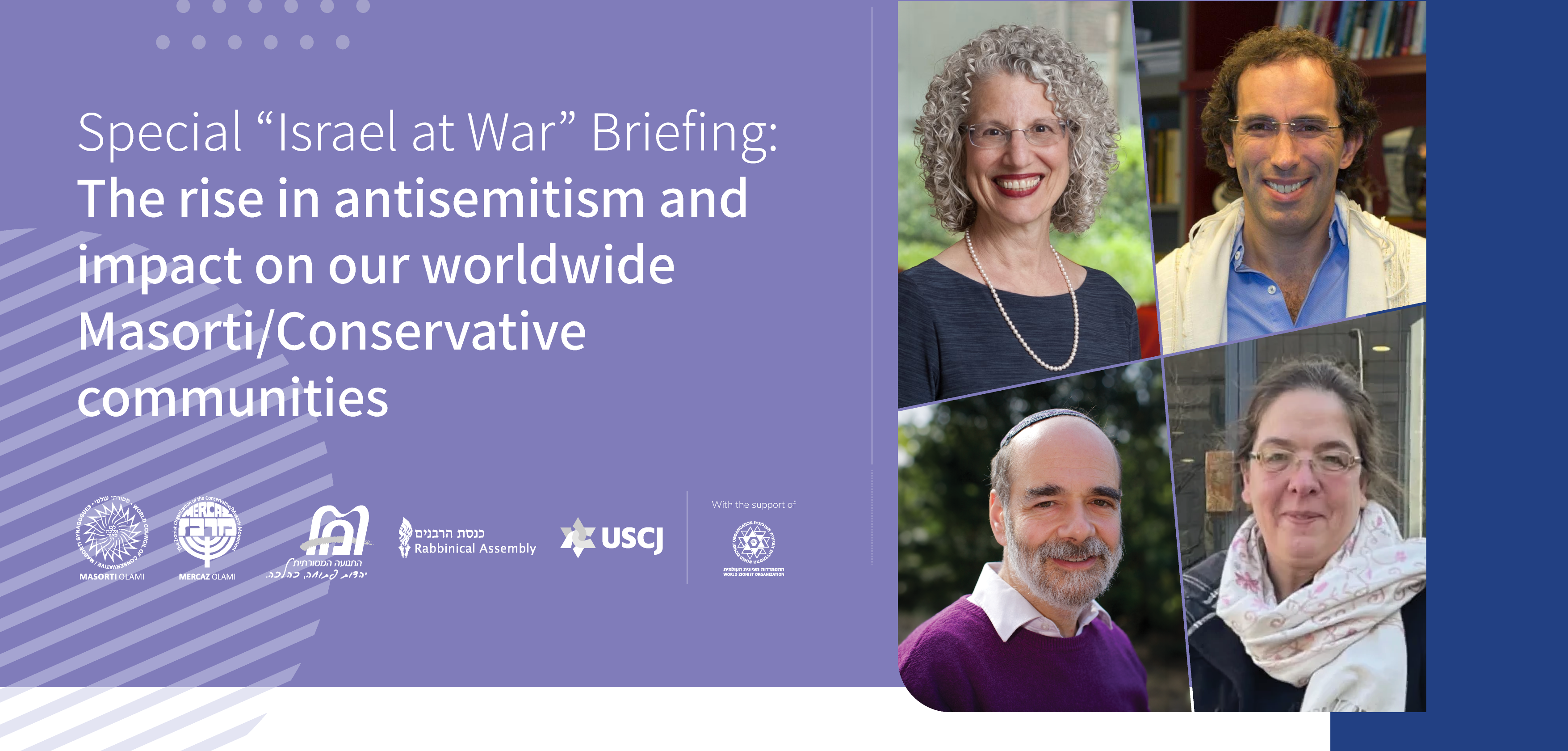 Shuly Rubin Schwartz, JTS Chancellor (New York, USA), Rabbi Fabián Skornik (Buenos Aires, Argentina), Rabbi Jonathan Wittenberg (London, UK), and Rabbi Gesa Ederberg (Berlin, Germany) talked about what is happening in their communities and countries. The event was facilitated by WZO Vice Chairman Dr. Yizhar Hess. Watch the recordings below (in English and with simultaneous translations into French and Spanish)