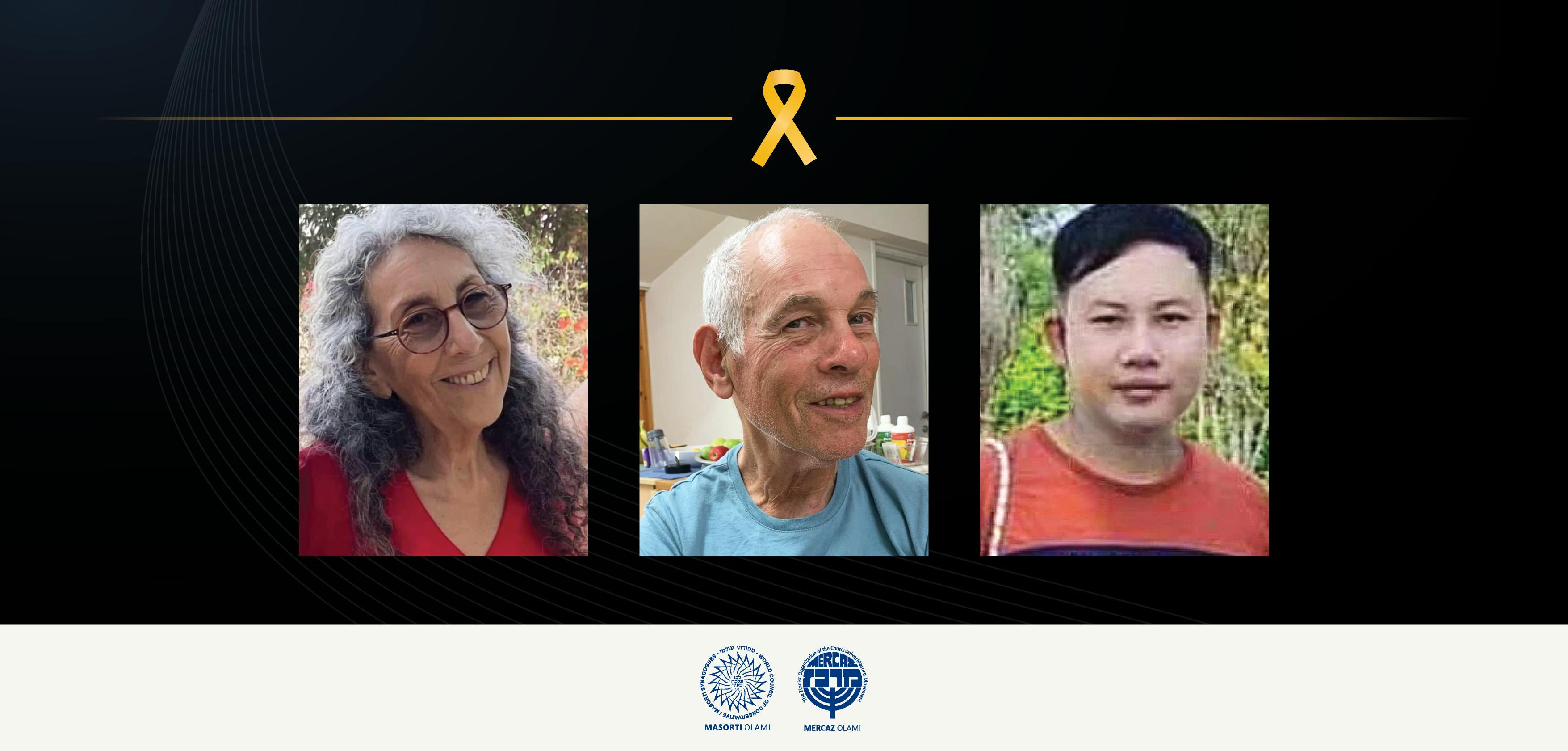 We are at a loss for words to express the immense pain and sorrow we are experiencing as the three fallen hostages, Judith Weinstein Haggai z”l (70), Gadi Haggai z”l (73), and Thai citizen Nattapong Pinta z”l (36), who were returned to Israel.
