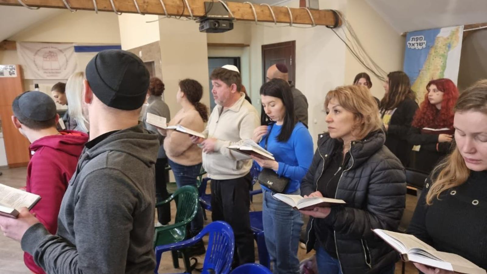 Those community members who have made it to Chernivtsi coming together for prayer