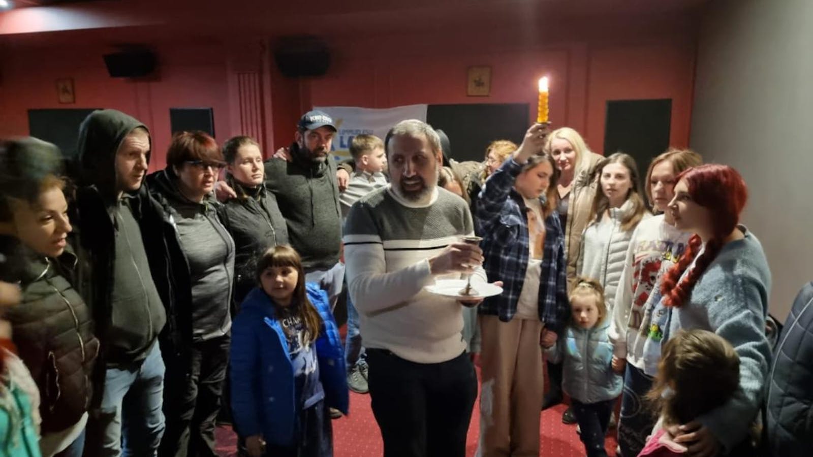 Rabbi Reuven Stamov leads havdallah for refugees and local community in Chernivtsi.