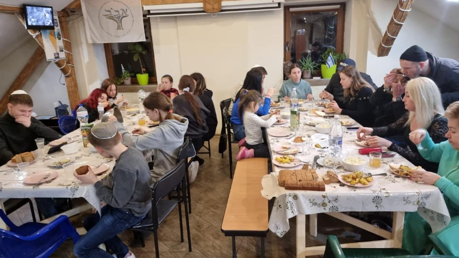 Our community members who have fled to Chernivtsi having a meal together