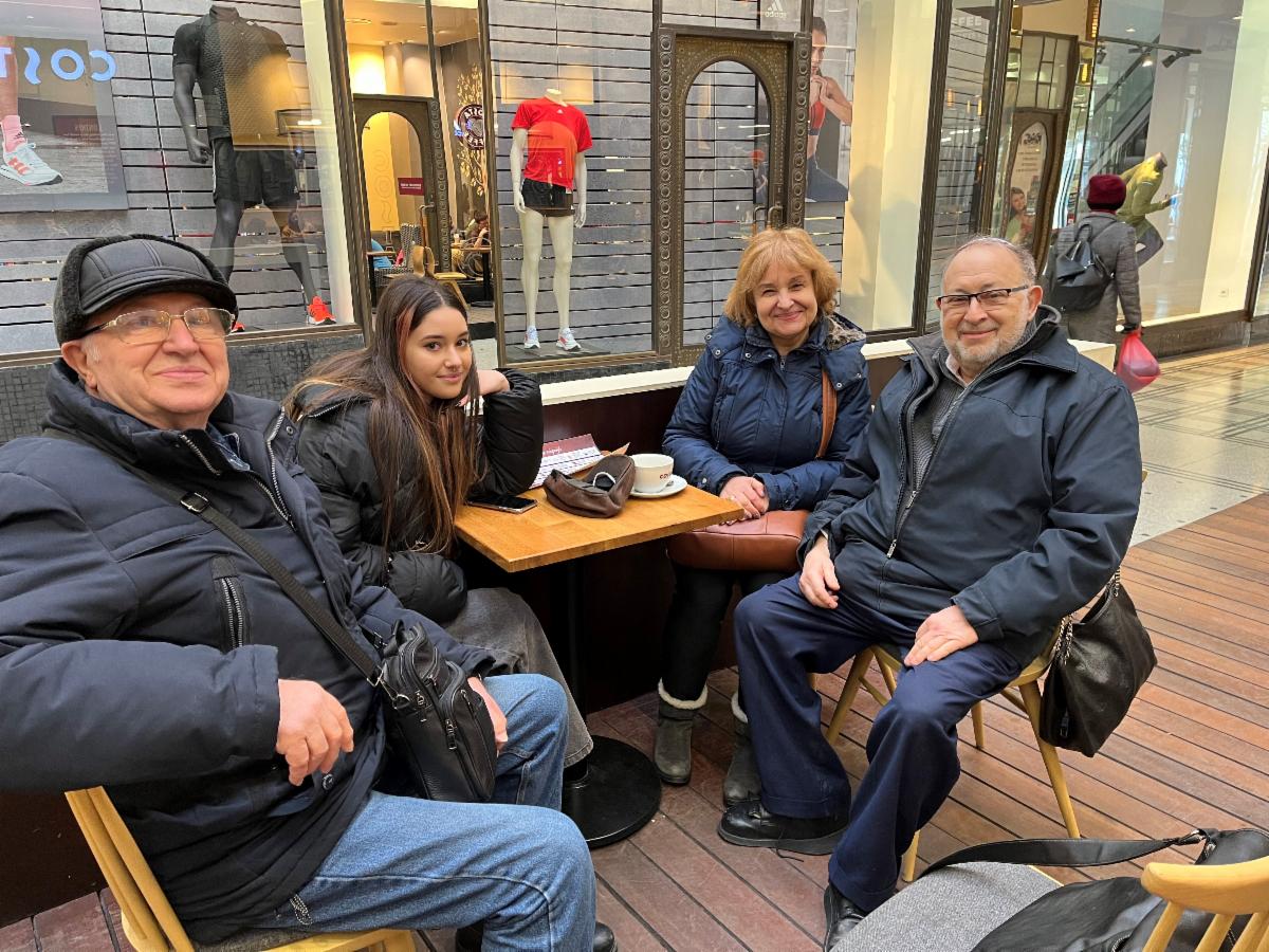 The refugee family from our community in Kyiv arrived in Prague yesterday, and are seen here with Rabbi Ron Hoffberg, leader of our community in Prague, who took them in