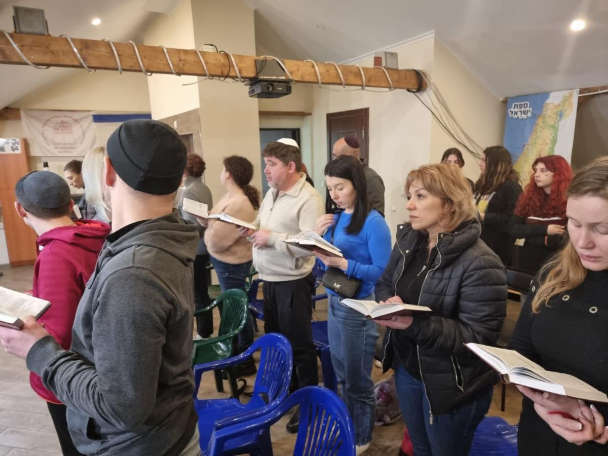 Those community members who have made it to Chernivtsi coming together for prayer