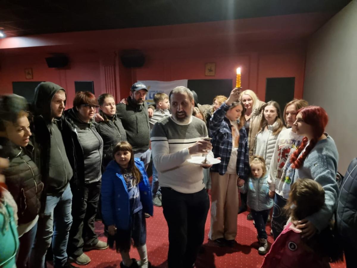 Rabbi Reuven Stamov leads havdallah for refugees and local community in Chernivtsi.