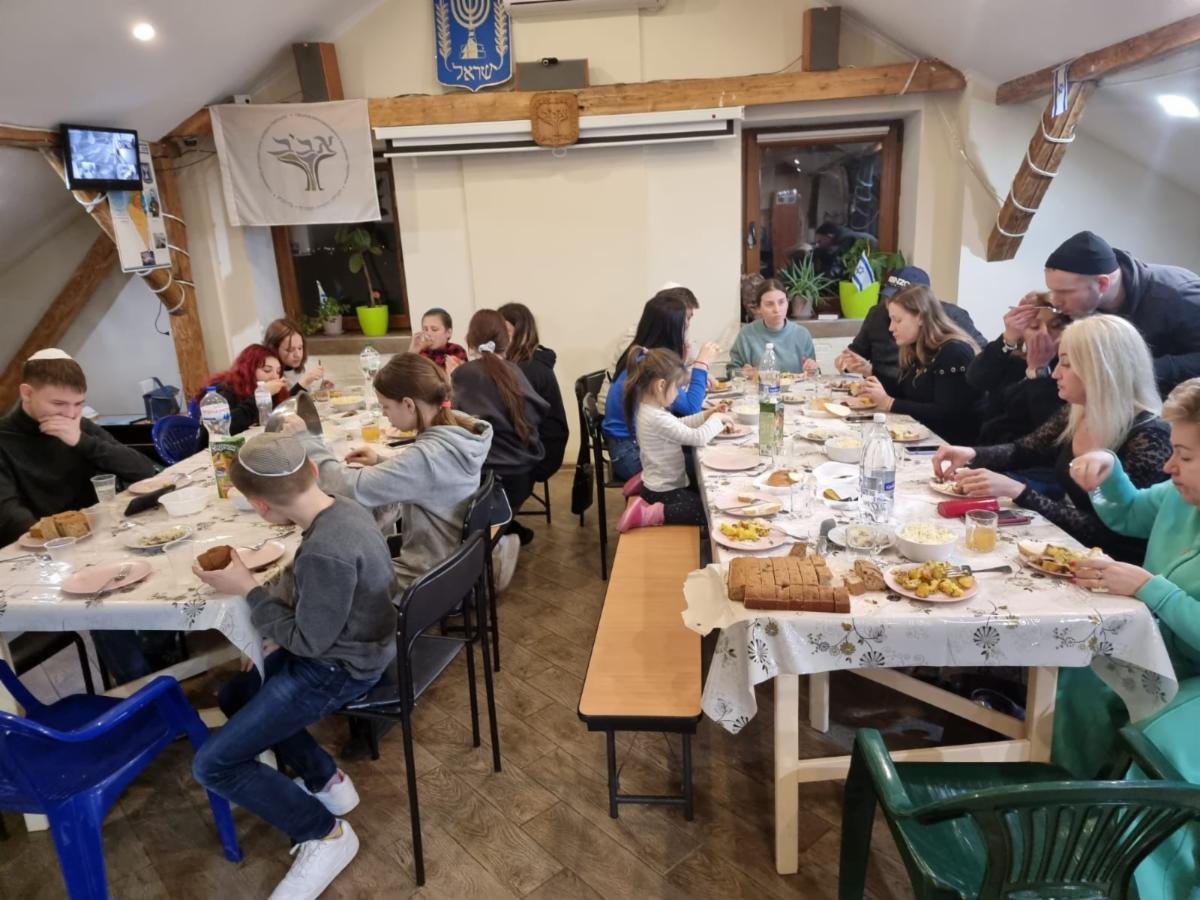 Our community members who have fled to Chernivtsi having a meal together